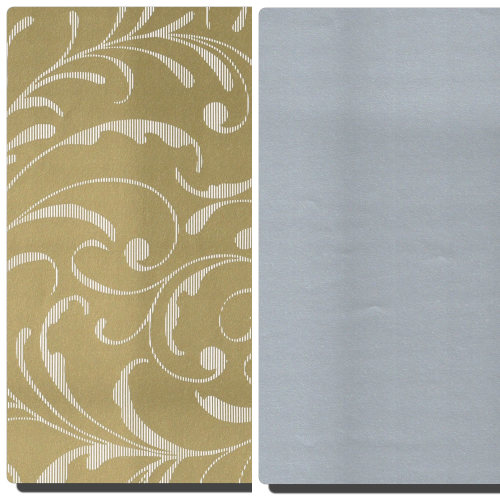 Gestrichenes Papier, Farben: braun/gold & gold/silber, Grammatur: 80 g/m², Rollenware, Zweifarbig, Format: 50 cm x 250 m (6 kg), 1 Rolle.