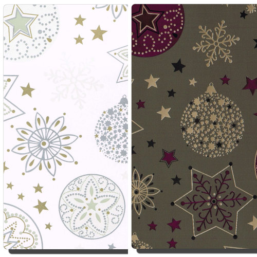 Geschenkpapier mit Kugel- und Sternmotiv